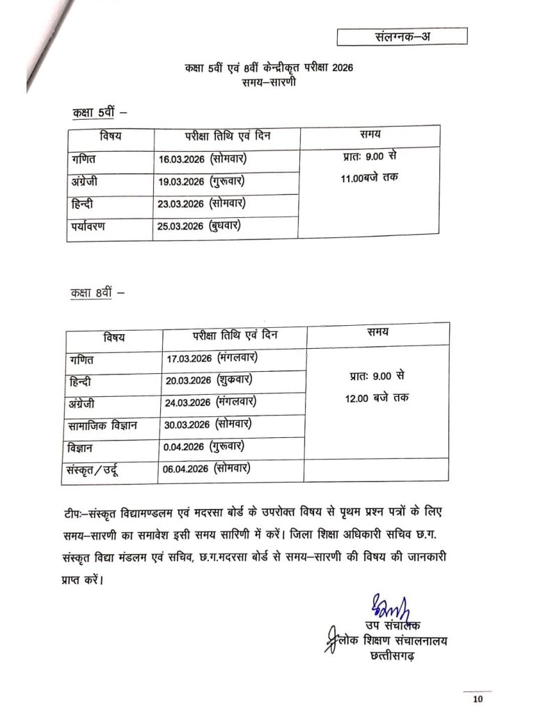 CG Exam Schedule Released : कक्षा 5वीं-8वीं की वार्षिक परीक्षा का टाइम टेबल जारी